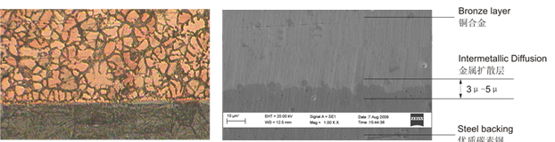 Из металлографической диаграммы видно, что критическая диффузионная масса между сталью и медным сплавом формирует взаимное диффузионное распространение между слоями диффузионной массы, возникающими в процессе ливания, что позволяет двум материалам достичь полной металлургической связи, что в любом случае является более мощным, чем сам медный сплав.